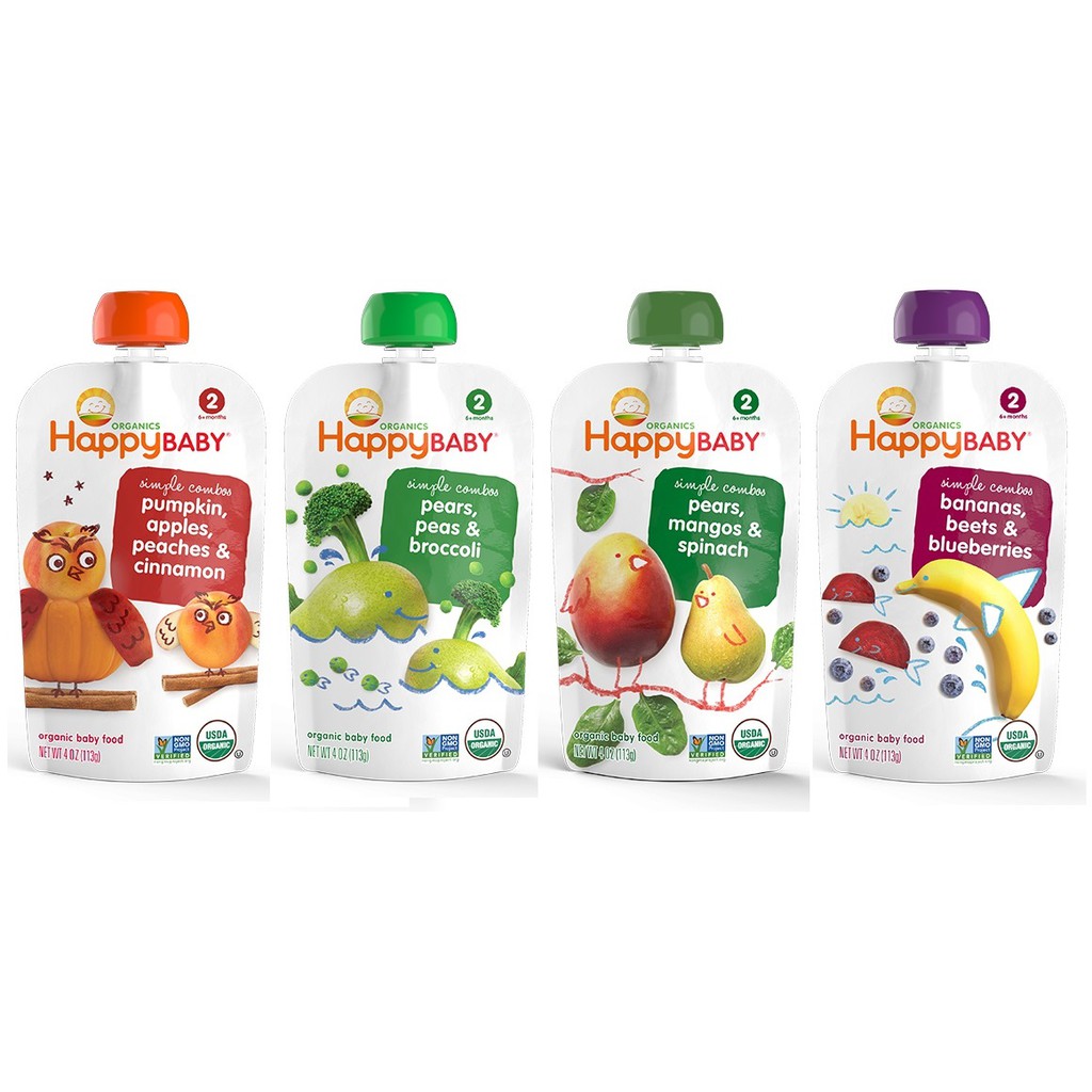 Great for the exploratory taste buds of Stage 2 eaters our Stage 2 baby foods and baby snacks introduce baby to simple balances of organic fruits and veggies in a smooth puree with all the new flavors your baby is learning to love Happy Baby. Happy Baby Organics Clearly Crafted Stage 2 Baby Food Pouches Fruit Veggie Variety Pack 4 Ounce Pouch Pack of 16 47 out of 5 stars 3988 ratings 33 answered questions Amazons Choice highlights highly rated well-priced products available to ship immediately. Every delicious fruit veggie is listed on the jar and can be traced back to the farm for confidence in every sweet feeding moment.