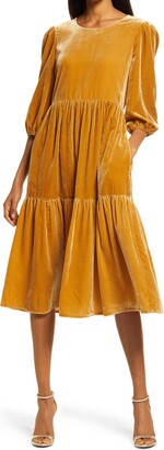 Charles Henry Tiered Ruffle Sleeve Dress