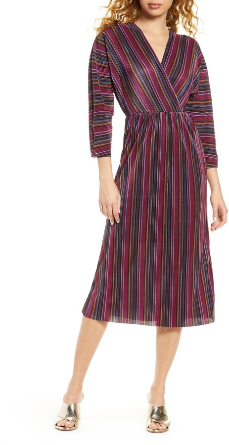 Plum striped womans size XS wrap top mini pleated material NWT. Twist Front Sparkle Stripe Midi Cocktail Dress In Multi Rainbow Stripe. Fast delivery full service customer support. Fast delivery full service customer support. Similar products also available. Its a dark blue but the stripes have dark red undertones. I wore this for my bridal shower and its so cute. Fast delivery full service customer support. Only worn once in new condition.