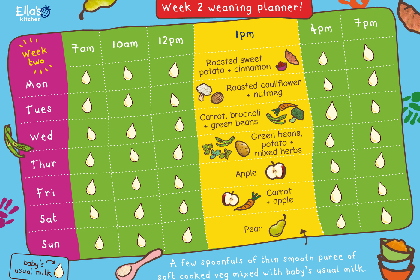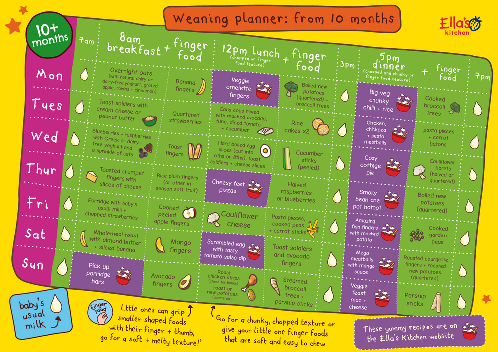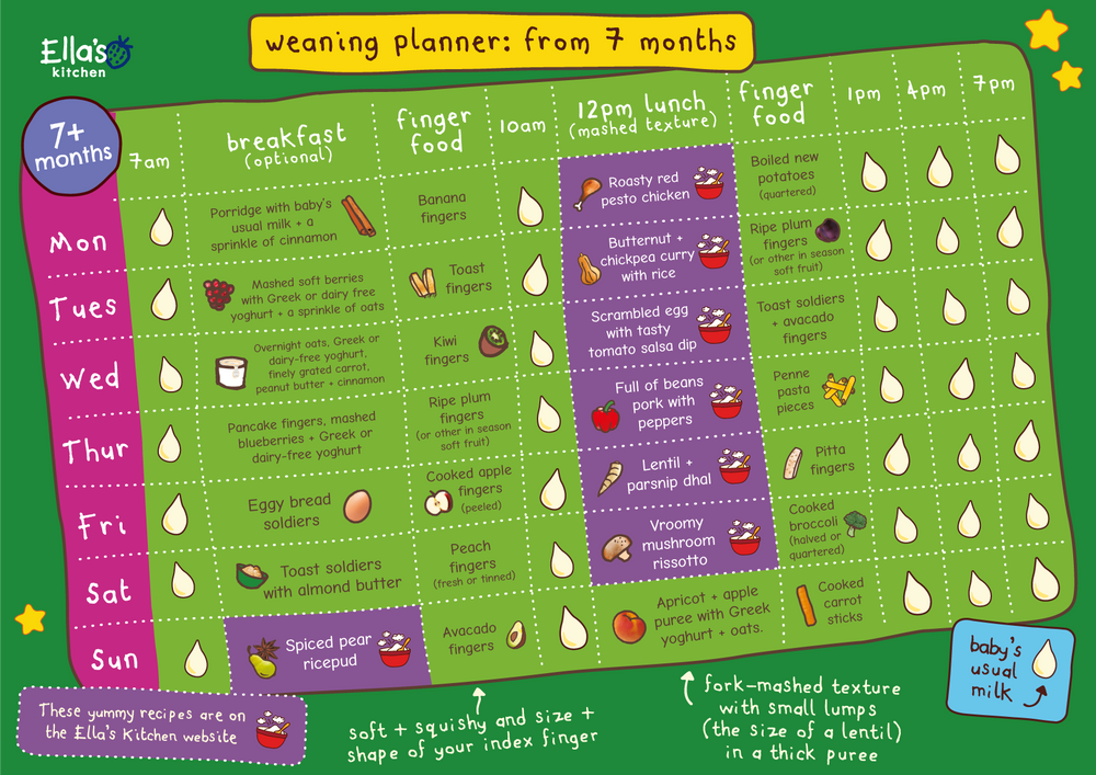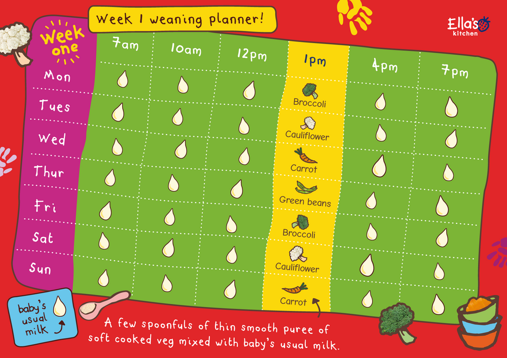 Weaning meal planner 6 months. Full of tips record sheets checklists and handy reminders to. Sample baby meal plan typical day in our house. Milk is still your babys main source of nutrition they need at least 500 ml 17 fl oz of breastmilk or formula every day.